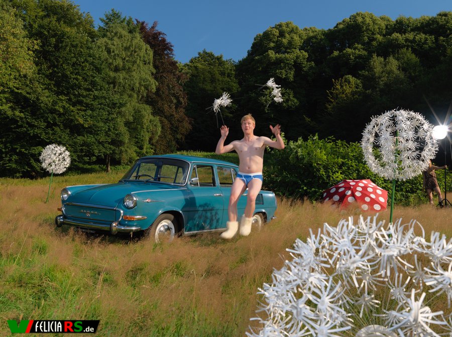 Angekommen ging es mit dem 1000MB mitten in einen Erholungspark von Wuppertal um den Škoda auf einer Wiese zu drapieren.
