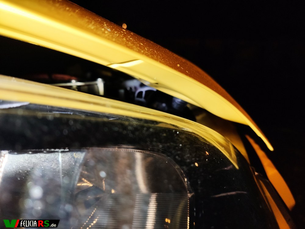Anfang April ging es dann zu FolienCarConcept nach Remscheid welche die Teilfolierung von Dach, Spoiler und der Heckstoßstange übernommen haben. Da ab Werk nur das Dach schwarz gemacht worden wäre hatte ich mich entschieden dies nachträglich machen zu lassen und dann auch den Spoiler mit machen zu lassen. Die Jungs haben auch das angelieferte extra in Wagenfarbe angefertigte Logo auf der Motorhaube Montiert. Die Spiegelkappen in Schwarz hatte ich bereits vorher selber getauscht. Vielleicht rüste ich da auch wieder auf Gelb zurück da bin ich mir noch nicht so sicher.