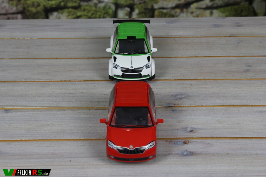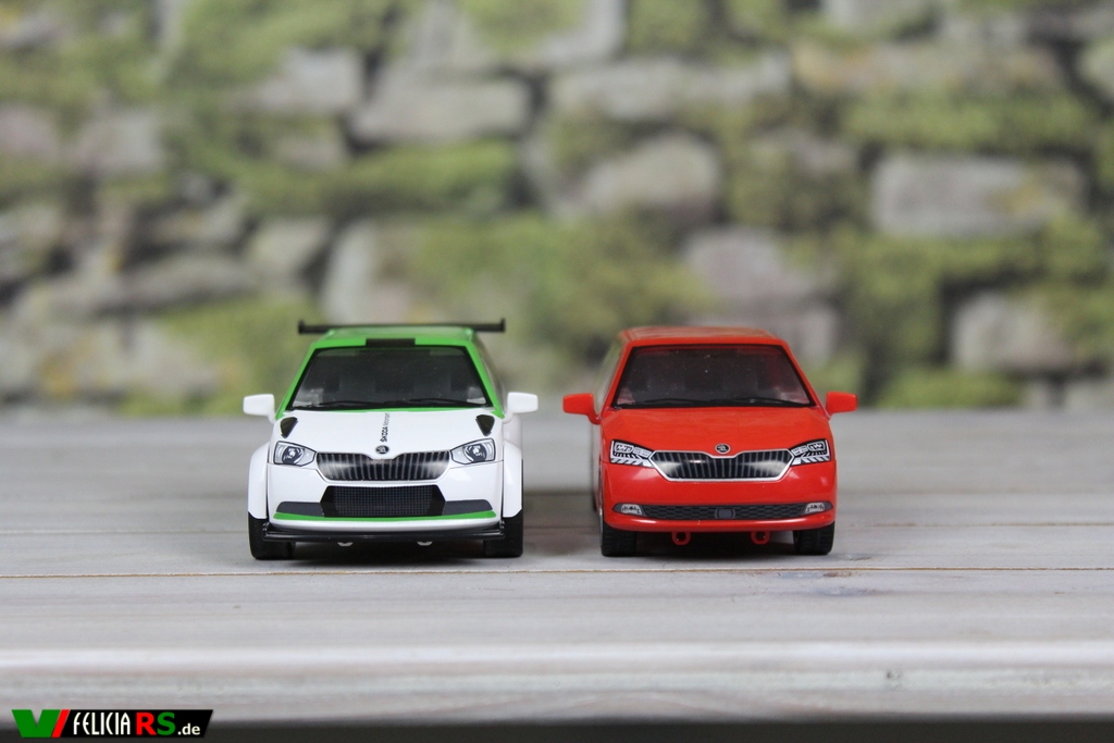 Vergleich Vorfacelift Fabia R5 und Facelift Fabia, Man beachte Scheinwerfer und Grill