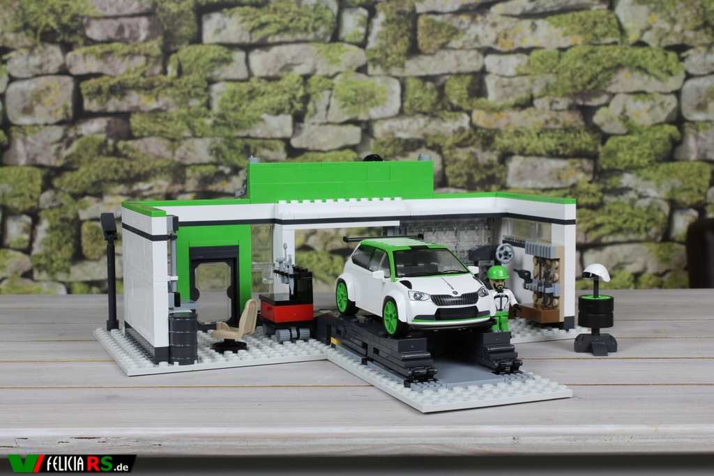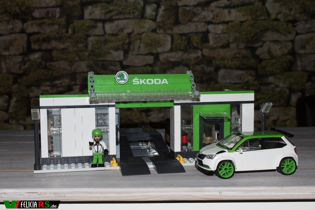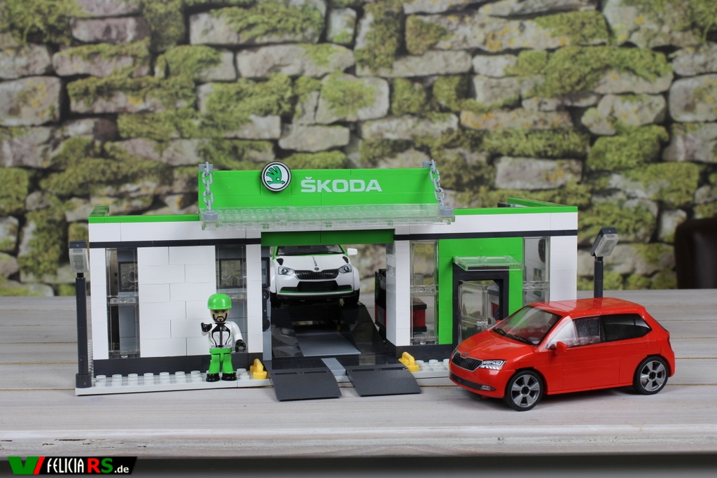 Die „Racing Garage“ wie sie offiziell heißt dauert beim Aufbau dann schon etwas länger. Besonders dabei sind das Škoda Grün welches ich so von LEGO Steinen nicht kenne. Ansonsten ist das Ganze in einem Designe gehalten welches man von offiziellen Škoda Gebäuden kennt. Die Garage hat ein Schiebetor und eine Hebebühne, womit das Set sich auch Dekorativ in die Vitrine stellen lässt. Mehr schaut ihr euch am Besten einfach im Video an. In der Videobeschreibung findet ihr auch Sprungmarken wenn ihr nicht den kompletten Aufbau sehen wollt.