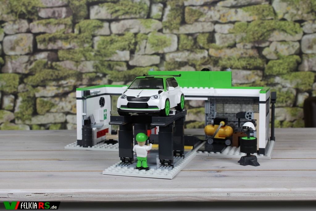 Die Racing Garage ist ein toller Spaß für Groß und Klein wenn man eine Schwäche für Klemmbausteine hat oder diese wieder aufkommen lassen möchte. Es ist dabei keine 1:1 Miniaturisierung wie man es aus dem Modellbau kennt, aber der Wiedererkennungswert ist auf jeden Fall gegeben. Ich kann nur hoffen das ich nicht der Einzige bin der sich für diese Baukästen begeistern kann und das noch viele folgen werden. Die Aufkleber hatten wir ja bereits schon beim Fabia und (kleiner Spoiler) auch bei den nächsten 2 Modellen. Das ist es eigentlich das was mich stört. Die Steine von Cobi sind 100% Kompatibel mit denen des Marktführers aus Dänemark und somit könnte man auch noch ohne Probleme anbauen. Qualitativ sind die Steine auf jeden Fall dazu in der Lage. Nur beim Škodagrün könnte es eng werden und man müsste das Set vielleicht ein zweites mal kaufen. Ob es einem das dann wert ist muss dann aber jeder für sich selbst entscheiden.